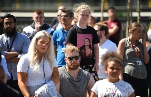 Des centaines de personnes sont à Manchester le 22 mai en hommage aux 22 victimes de l'attentat commis un an plus tôt à l'issue d'un concert d'Ariana Grande. Photo: AFP/VNA/CVN |