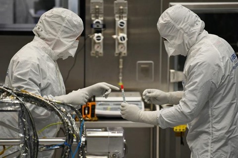 | Des ingénieurs travaillent sur le robot Rosalind Franklin de la mission ExoMars à Stevenage, au nord de Londres. |
