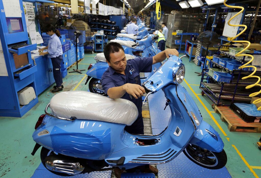 | Dans l'usine Piaggio Vietnam à Vinh Phuc (Nord). |