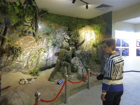 | Une touriste étrangère au Musée de la victoire historique de Diên Biên Phu. |