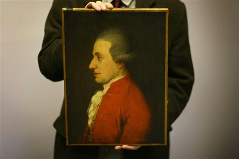| Un portrait de Wolfgang Amadeus Mozart présenté au King's College de Londres, le 14 mars 2008. |