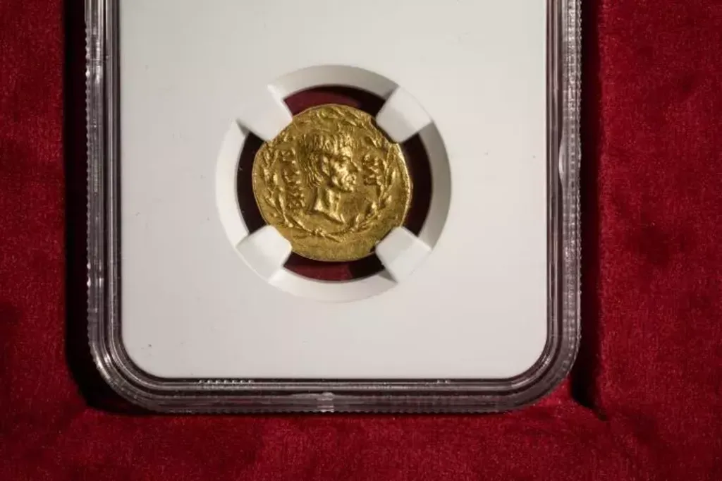 L’aureus, l’un des 17 exemplaires connus, a une histoire fascinante. Il est resté caché pendant des siècles avant de réapparaître dans les années 1950 dans un catalogue de collection privée, puis lors d'une vente en 2006 à Zurich pour 360.000 francs suisses.