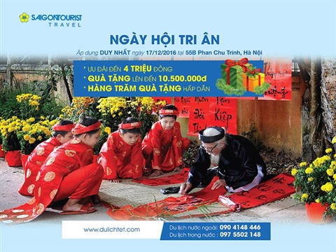 À Hanoï, le programme «Reconnaissance aux clients» sera disponible dès le 17 décembre dans les locaux situés au 55B, rue Phan Chu Trinh, (arrondissement de Hoàn Kiêm). Les clients pourront profiter d’une réduction de 4 millions de dôngs par personne pour les tours nationaux et internationaux, mais aussi d’un coupon d’une valeur de 10,5 millions de dôngs. En plus, les clients auront l’occasion de découvrir des pays et territoires de l’Asie du Sud-Est et du Nord-Est, en Europe, en Australie et en Amérique, avec une promotion de 500.000 dôngs pour tous billets aller-retour.