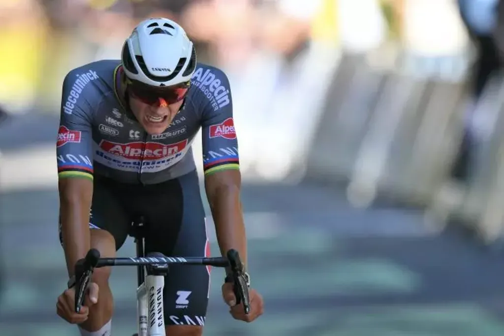 Mais quel début de Tour ! Vainqueur de la deuxième étape à Boulogne-sur-Mer, le champion du monde 2023 a endossé pendant quatre jours le maillot jaune. Il l'a porté avec fierté lors de l'étape arrivant à Mûr-de-Bretagne, où il avait gagné en 2021 et rendu un hommage émouvant à son grand-père décédé, Raymond Poulidor.