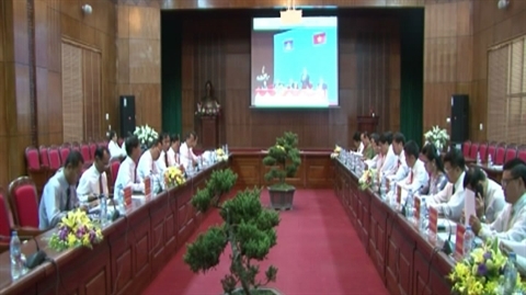 | Séance de travail entre dirigeants des provinces de Diên Biên (Vietnam) et de Phongsaly (Laos). |
