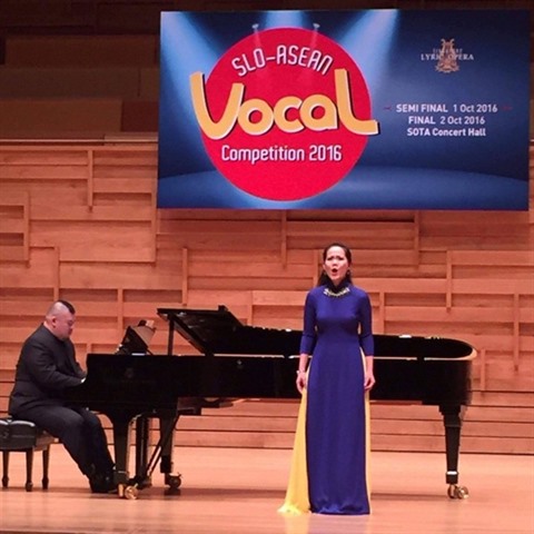 Lors du Concours de chant de l’ASEAN - Opéra Lyrique de Singapour (SLO), Pham Khanh Ngoc, qui est aussi membre de l’Opéra-ballet de Hô Chi Minh-Ville, a concouru dans sa catégorie professionnelle contre 42 adversaires âgés de 18 à 35 ans en provenance des Philippines, de la Thaïlande et de Singapour.