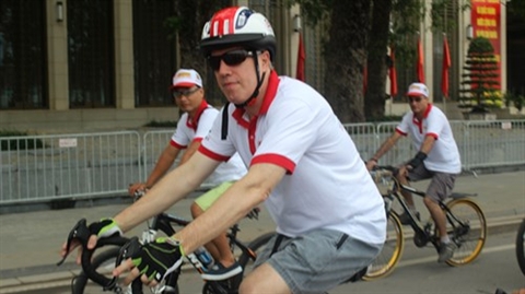 | L'ambassadeur des États-Unis au Vietnam, Ted Osius, participe à la promenade à vélo. |