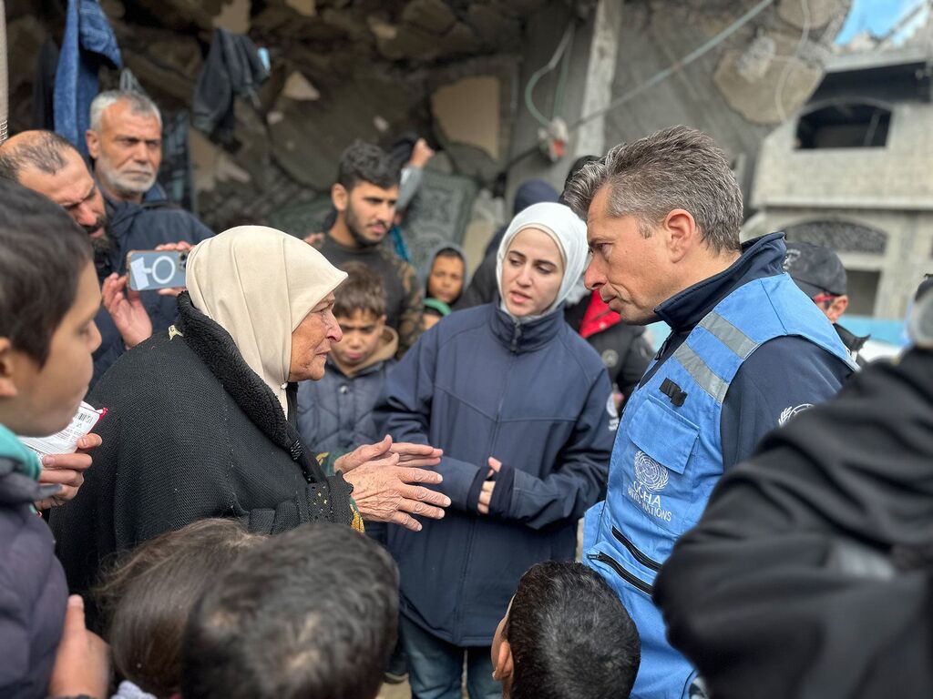 | Le chef de l'humanitaire de l'ONU, Tom Fletcher, lors d'une visite dans le Nord de Gaza. |