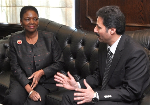 | La responsable des opérations humanitaires de l'ONU, Valerie Amos, et le ministre des Affaires sociales Jassem Zakaria, le 27 janvier à Damas. Photo : AFP/VNA/CVN |