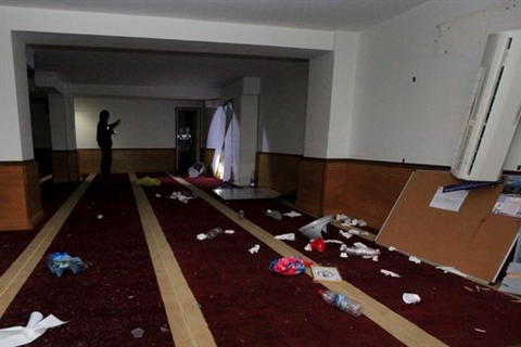 | Une photo de la salle de prière musulmane saccagée à Ajaccio, en Corse, en marge d'une manifestation le 25 décembre 2015. |