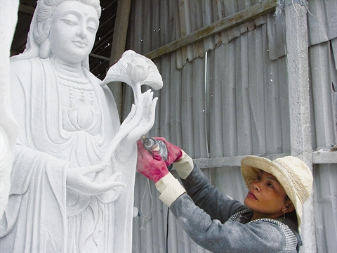 «La sculpture sur pierre n’est pas un métier facile pour les femmes. Les mouvements sont pénibles et on travaille dans la poussière, dit Lê Thi Hoà Binh. Chaque statue doit aussi avoir une âme et un style propre». Une femme sculpteur est un phénomène rare à Non Nuoc. Elles sont généralement spécialisées dans le polissage des statues, alors que le travail au ciseau et la taille sont réservés aux hommes.
