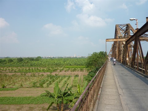 | Le pont Long Biên de jour, avant une soirée bien animée. |