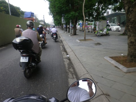 Autre élément qui différencie l’Occidental à moto du Vietnamien dans la même situation : le second se tient toujours très droit, alors que le premier a tendance à s’arc-bouter comme un buffle prêt à charger. Je suis toujours admiratif du port de reine de toutes ces Vietnamiennes qui sillonnent les rues avec élégance. Moi, quand j’essaie de me redresser, c’est le ventre qui ressort. Et si je redresse le dos et rentre le ventre, c’est l’asphyxie qui me guette !
