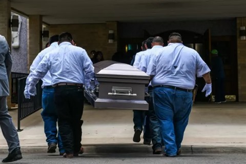| Des hommes portent le cercueil d'Amerie Jo Garza, victime de la tuerie de l'école Robb, à Uvalde, au Texas, le 31 mai. |