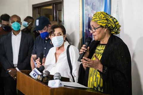 | La vice-secrétaire générale des Nations unies, Amina Mohammed (droite), le 20 août à Port-au-Prince. |