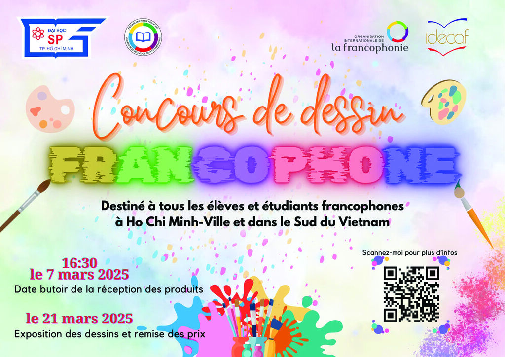 Les candidats ont jusqu’au 16h30 le 7 mars 2025 pour envoyer leurs œuvres à l’une des adresses suivantes : Bureau du Département de français de l’Université de pédagogie de Hô Chi Minh-Ville (Salle A.412, Bâtiment A, 280 rue An Duong Vuong, 4e quartier, 5e arrondissement, Hô Chi Minh-Ville) ; Bureau des études de l’IDECAF (31 rue Thái Van Lung, quartier Bên Nghé, 1er arrondissement, Hô Chi Minh-Ville).