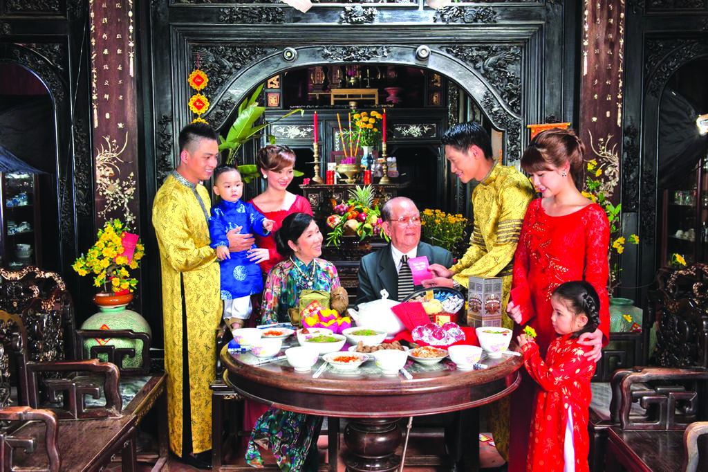 (Bánh chung, bánh tét : gâteaux de riz gluant de forme carrée et cylindrique)