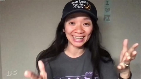 | Image vidéo de la réalisatrice Chloé Zhao qi reçoit le Spirit Award du meilleur film pour Nomadland, le 22 avril. |
