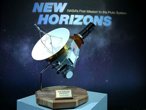 | Une maquette de la sonde New Horizons, le 15 juillet 2015 à Laurel, dans le Maryland. |