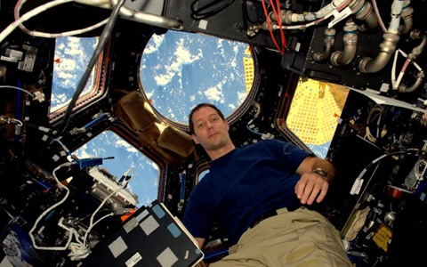| Thomas Pesquet dans la capsule spatiale en route vers l'ISS le 22 novembre 2016. |