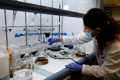| Un chercheur de la société NanoScent montre l'utilisation du test de détection du nouveau coronavirus, à Misgav le 21 juillet. |