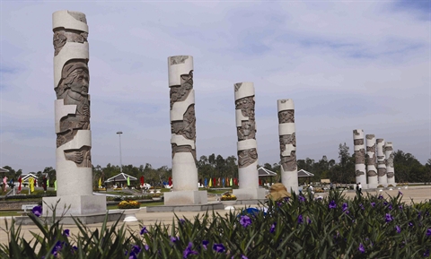 Devant la statue monumentale s’étend une grande place, où 30 carrés de gazon symbolisent les 30 ans de résistance contre les Français puis les Américains. Un peu plus loin se dressent huit colonnes en pierre de 9 m de haut et 1,65 m de diamètre, sur lesquelles sont gravées des scènes racontant les exploits des «Mères Héroïnes vietnamiennes». On y remarque aussi les images des jeunes filles d’un détachement de «la jeunesse de choc» en mission sur la piste de Truong Son ou piste Hô Chi Minh (axe de ravitaillement secret du Nord au Sud). Bon nombre d’entre elles ont été tuées lors des bombardements ennemis.