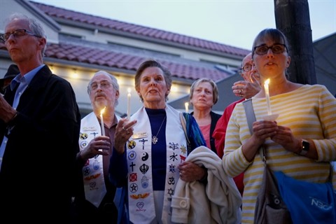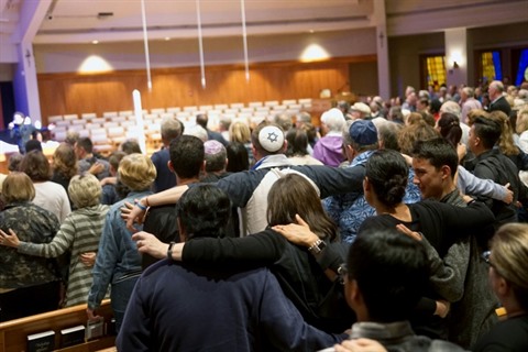 | Veillée pour les victimes de la fusillade à la synagogue Chabad, dans l'église presbytérienne de Rancho Bernardo à Poway, en Californie le 27 avril 2019. |