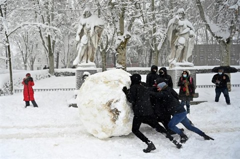 | Boule de neige géante à Madrid le 9 janvier. |