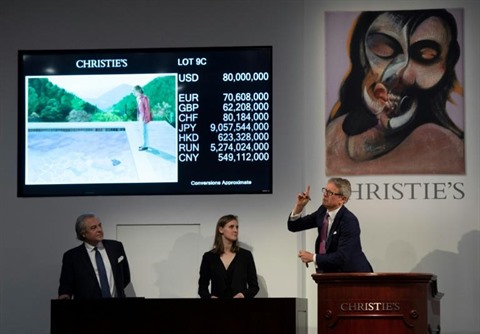 | Le tableau de David Hockney +Portrait of an Artist (Pool with Two Figure)+ a été adjugé 80 millions de dollars chez Christie's, prix porté à 90,3 millions de dollars après frais et commissions. |