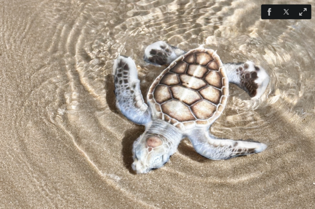La dernière naissance a eu lieu lors de la saison de ponte de cette année. La petite tortue arbore une carapace ivoire éclatante, bordée d’un liseré blanc comme du givre, et des yeux d’une transparence saisissante, un spectacle fascinant pour les biologistes comme pour les visiteurs de passage.
