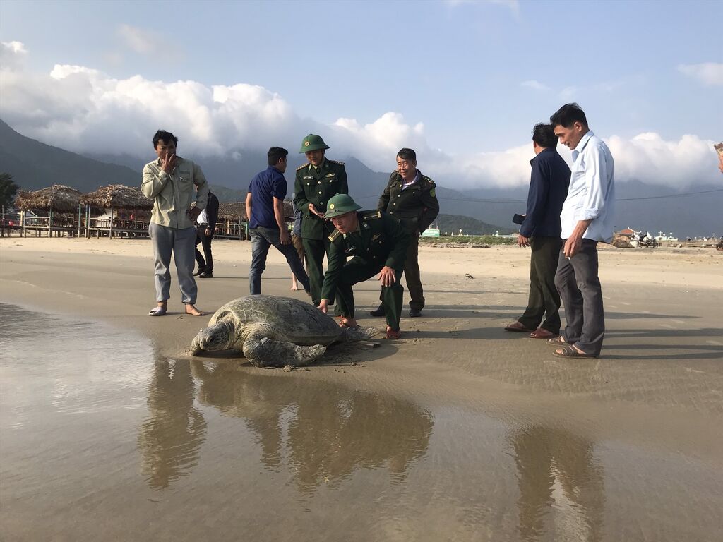 Un pêcheur local avait trouvé au petit matin du même jour cette tortue imbriquée dans un filet dans la lagune côtière du bourg de Lang Cô, district de Phu Lôc, et l'avait volontairement remise aux autorités locales. Ces dernières ont par la suite coopéré avec le Poste de garde-frontière de Lang Cô et le Garde forestier du district de Phu Lôc, province de Thua Thiên-Huê, pour libérer l'animal.