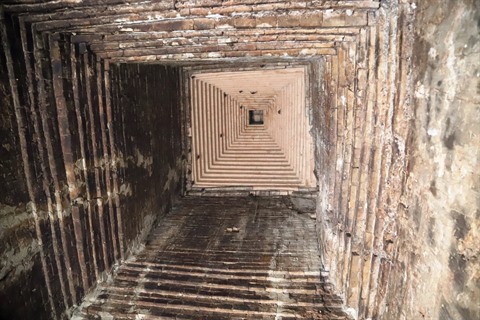 | Les briques minutieusement assemblées du plafond de la tour. |