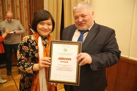 | L'écrivaine et traductrice vietnamienne Nguyên Thuy Anh reçoit le prix annuel russe de la traduction littéraire, le 16 février à Moscou. |