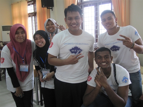 | Au total, 75 jeunes de sept pays d’Asie seront à Huê jusqu’au 21 juillet. Ici, des étudiants malaisiens. |