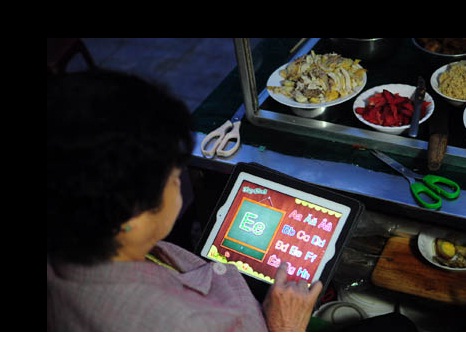 Cela fait longtemps qu’elle voulait apprendre cette langue, mais elle n’avait pas de temps alors. Maintenant, elle suit assidûment les programmes d’anglais de la radio nationale La Voix du Vietnam et de la Télévision nationale, auxquels elle adjoint divers livres et journaux. Il y a deux ans, son fils lui a offert un iPad pour apprendre plus aisément. Les premiers temps, ne sachant pas s’en servir, l’un de ses petits-enfants l’a aidé, jusqu’à ce qu’elle devienne indépendante.