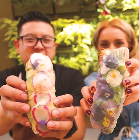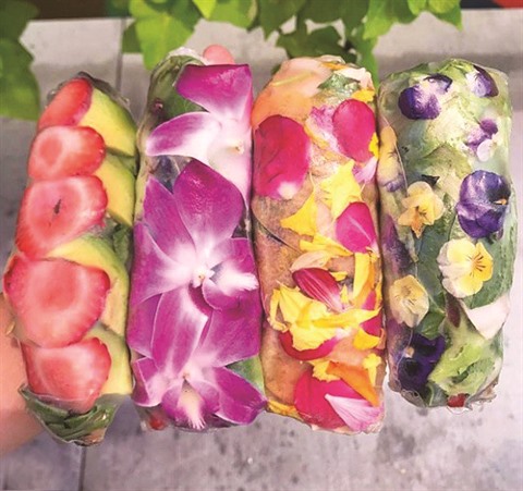 | Les rouleaux de printemps aux fleurs et fruits, proposés par le restaurant Red Enveloppe aux États-Unis. |