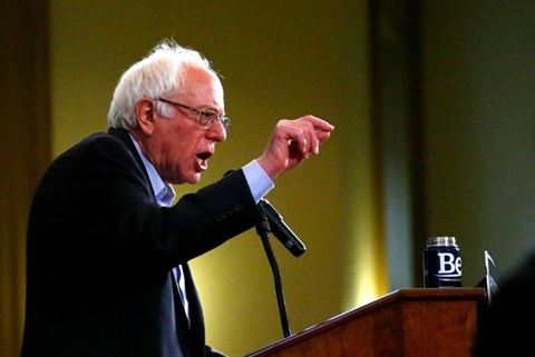 | Le candidat à la primaire démocrate Bernie Sanders lors d'une réunion publique dans une université du quartier du Bronx, le 9 avril à New York. |