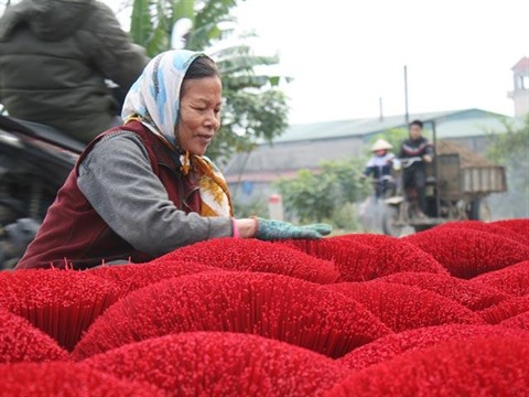 En vendant ses bâtonnets dans le Centre du Vietnam, Hoa peut gagner jusqu'à 430 dollars par mois avant le Têt, une somme rondelette dans un pays où le revenu mensuel moyen est de 195 dollars par habitant.