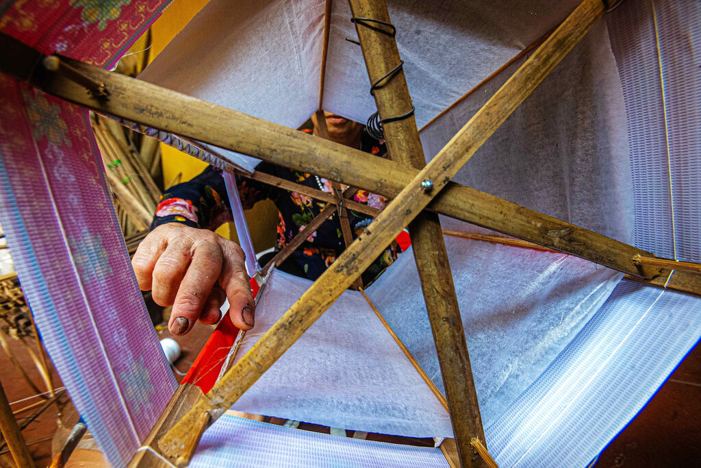 | L’artisan Nguyên Van Quyên et sa femme affairés à leur métier traditionnel. |