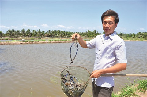 | Quand arrive l’eau salée, les habitants de Côn Chim commencent l’élevage de crevettes. |