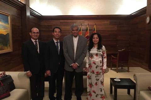 | L’ancienne ambassadrice du Vietnam au Sri Lanka et aux Maldives, Phan Kiêu Thu, à côté du Premier ministre srilankais Ranil Wickremesinghe. |