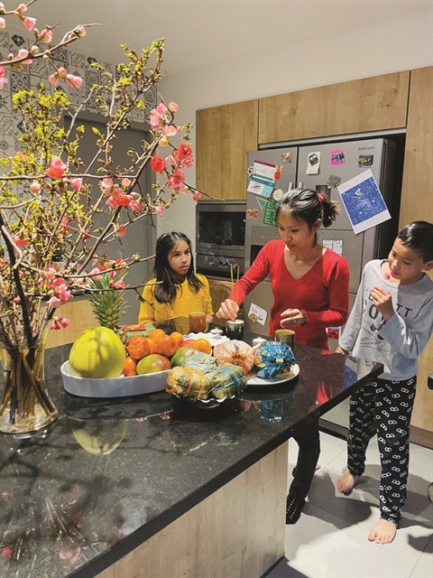 | Nguyên Tô Mai apprend à ses enfants les traditions du Têt (Nouvel An lunaire) traditionnel. |