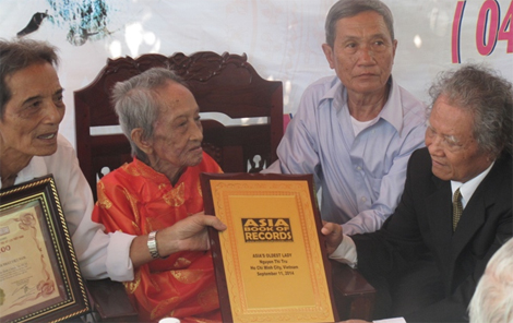 Née le 4 mai 1893, Nguyên Thi Tru, domicilée dans la commune de Da Phuc, district de Binh Chanh à Hô Chi Minh-Ville, est connue comme la femme la plus âgée du Vietnam.