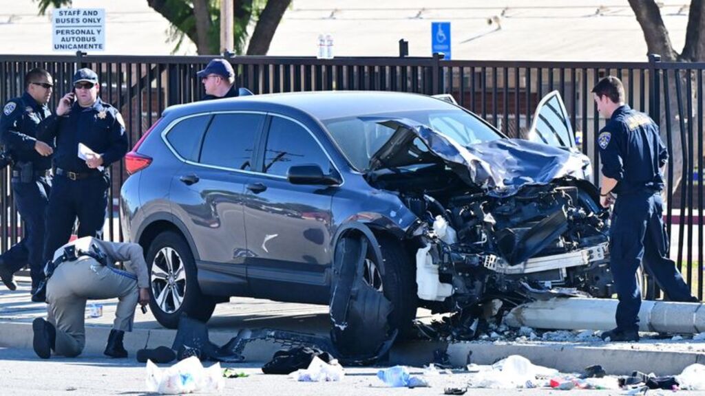 Une vidéo prise sur place montre un véhicule noir de type SUV sur le trottoir, sa partie avant endommagée. Il roulait à contresens au moment de l'incident, selon les pompiers cités par le Los Angeles Times.