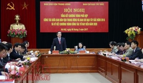 En 2016, les deux organes ont bien appliqué leur programme de coordination en favorisant l’efficacité du travail de mobilisation de masse et des affaires ethniques et religieuses dans les localités de la région du Tây Bac. Ce qui a contribué au développement socio-économique, à la réduction de la pauvreté, à l’amélioration de la vie matérielle et spirituelle de la population locale, ainsi qu’au maintien de la sécurité politique et de l’ordre public dans la région.