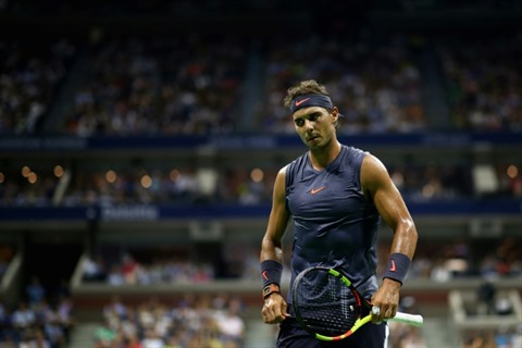 | Le tenant du titre Rafael Nadal vainqueur de David Ferrer sur abandon à l'US Open, le 27 août à New York. |