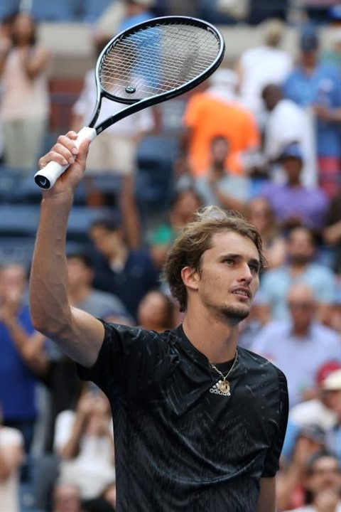 | L'Allemand Alexander Zverev après sa victoire contre le Sud-Africain Lloyd Harris en quart de finale de l'US Open, le 8 septembre à Flushing Meadows. |