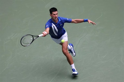 | Le Serbe Novak Djokovic face au Britannique Kyle Edmund au 2e tour de l'US Open, à New York, le 2 septembre. |