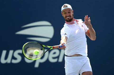 | Le Français Richard Gasquet face au Japonais Yuichi Sugita au 1er tour de l'US Open, le 28 août à New York. |