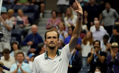 | Le Russe Daniil Medvedev, vainqueur de l'Allemand Dominik Koepfer, lors du 2e tour de l'US Open, le 1er septembre à New York. |